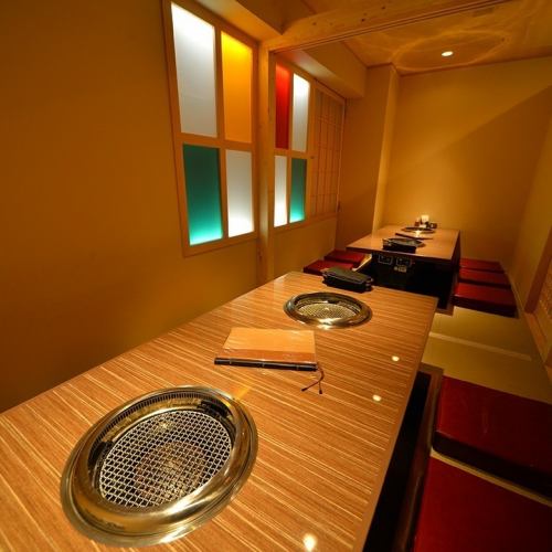 デートや女子会などプライベートでもお使いいただける店内のお席は全席仕切りがあるから人眼を気にせずお楽しみ頂けます。人数に合わせてパテーションを変えることができますので、事前にお問い合わせください
